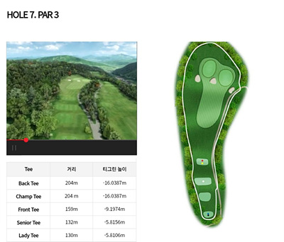 초급이나 중급자 골퍼까지도 함께 즐길 수 있는 코스이며 OB, 벙커, 해저드, 내리막과 오르막 등 다양한 코스 구성되어 있어 초급자를 지도하기에 좋은 코스입니다.