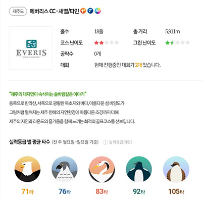먼저 아래에서 에버리스 CC의 골프존 기본정보를 살펴보고 가시죠!