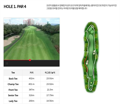 코스가 넓고 길지 않아 골린이도 마음 편하게 샷을 구사할 수 있고 자연과 더불어 힐링이 가능한 코스입니다.