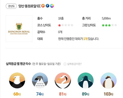 양산 동원 로얄 CC 골프존 정보