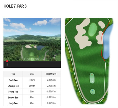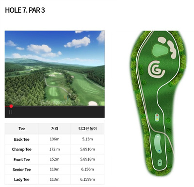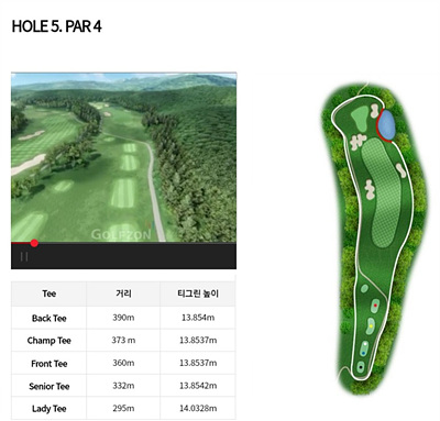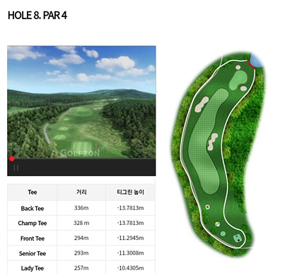 숲을 잘 살리고 맑은 하늘의 구름과 워터해저드 등을 짜임새 있게 구성하여 시원한 경관을 즐길 수 있는 라운딩은 또 다른 재미를 선사할 것입니다. 코스의 난이도를 감안하여 상당한 수준의 골퍼분이라면 도전정신을 갖고 도전해 보시죠!