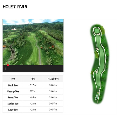 하지만 상당한 실력을 갖고 도전정신을 유발하는 코스를 원하신다면 시원한 경관과 함께 환상적인 코스에서 라운딩을 즐길 수 있으니 도전해 보시죠!!!